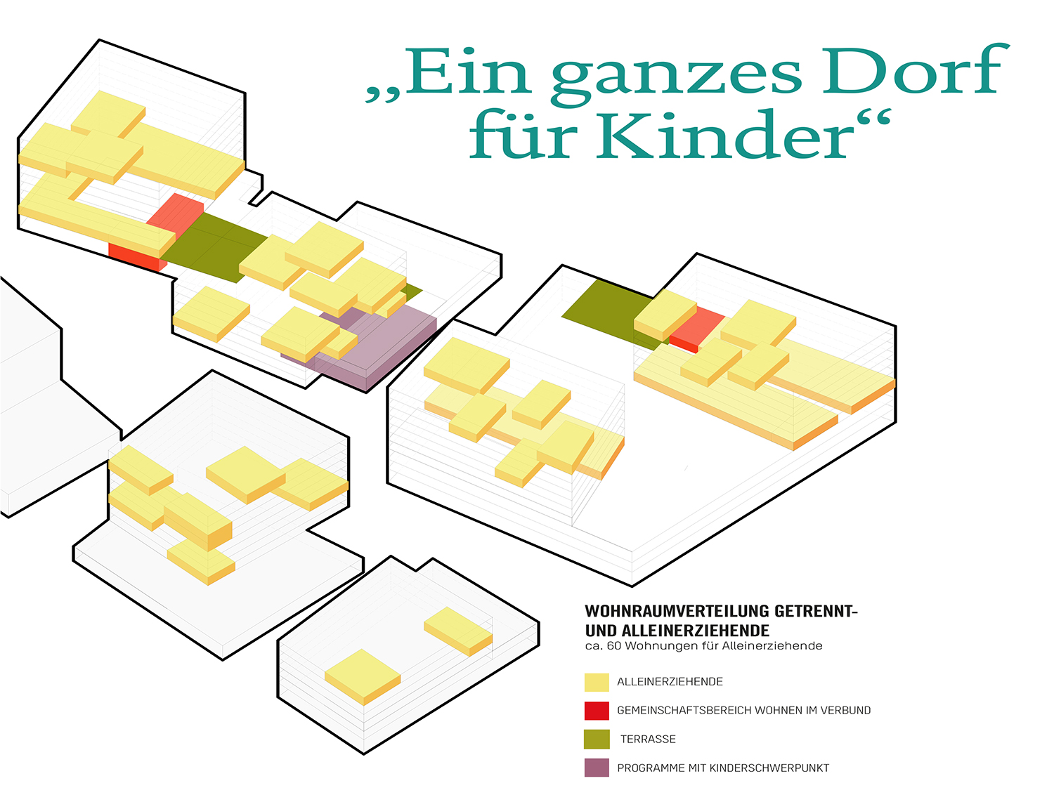 - Grundrisslösungen auf Bedürfnisse von Alleinerziehenden angepasst
