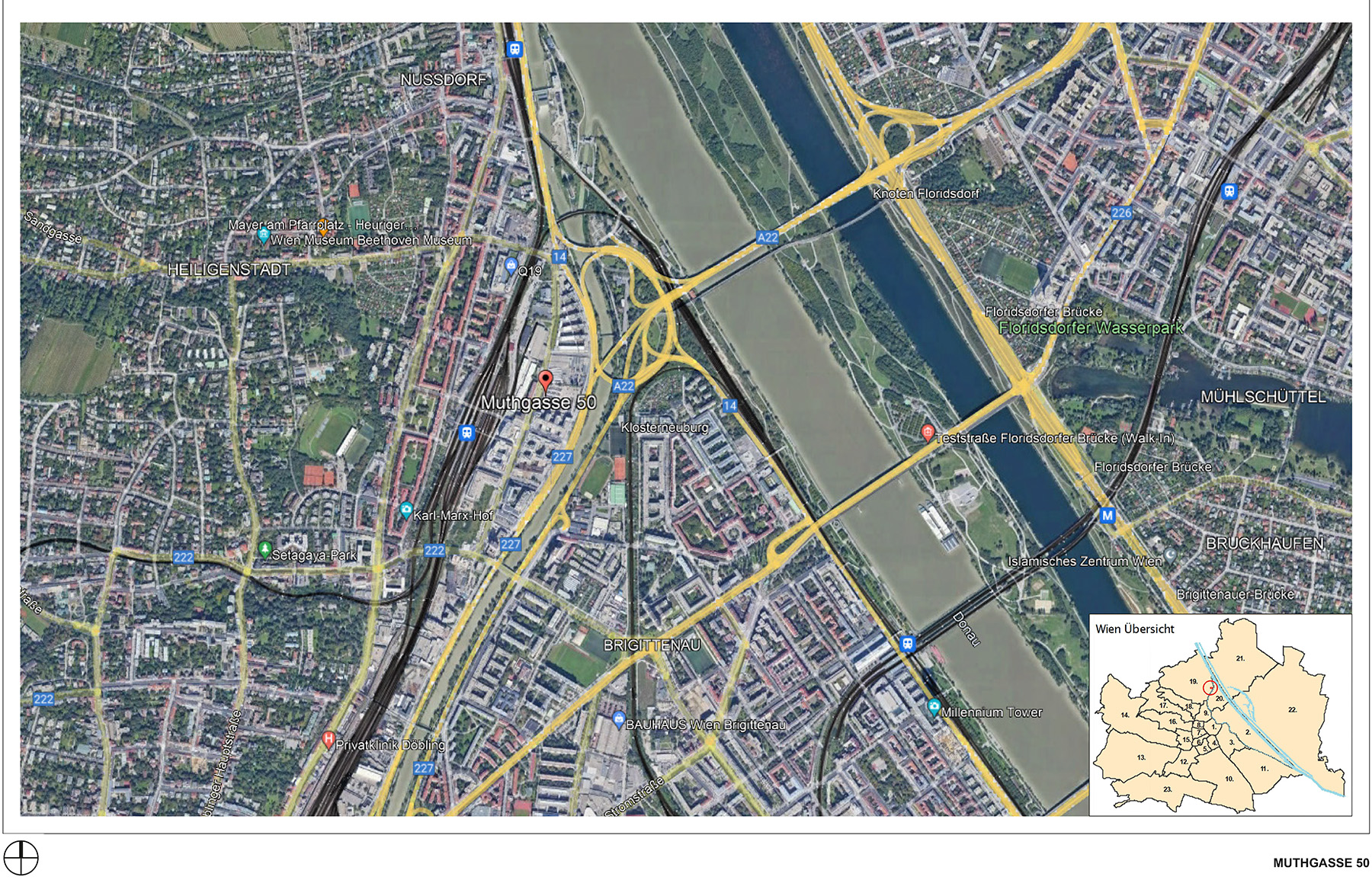 - über die Heiligenstädter Brücke Anschluss an die A22 – Donauufer Autobahn und B14 Richtung Klosterneuburg