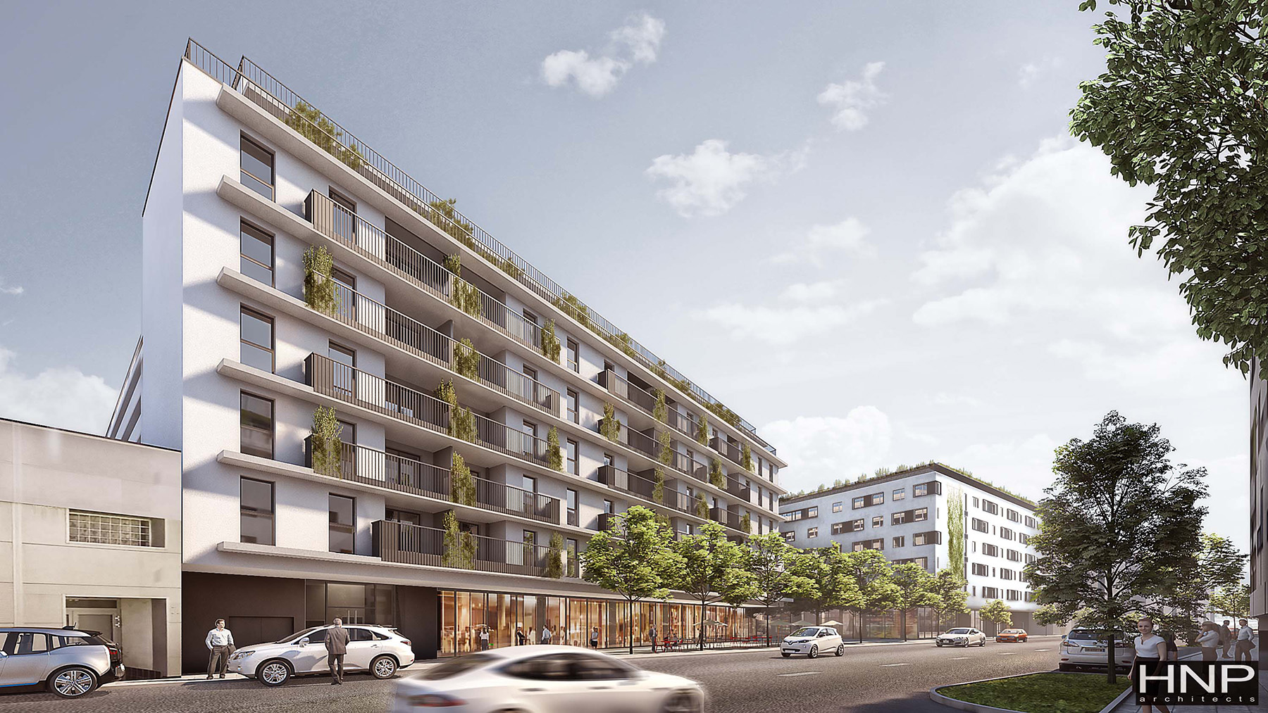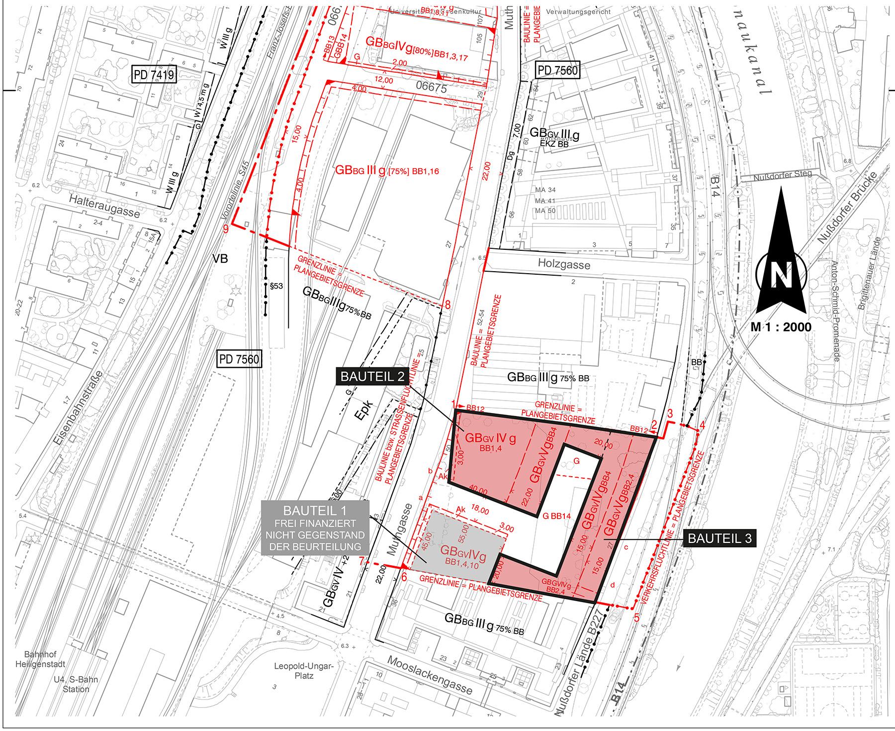 - Das Neubauprojekt vom Bauträger WBV-GPA in unmittelbarer Nähe zur U-Bahn-Station U4 „Heiligenstadt“ (ca. 5 min Fußweg) besteht aus drei kompakten Baukörpern in Massivbauweise mit einer Sockelzone und bis zu 8 darüber liegenden Stockwerken.