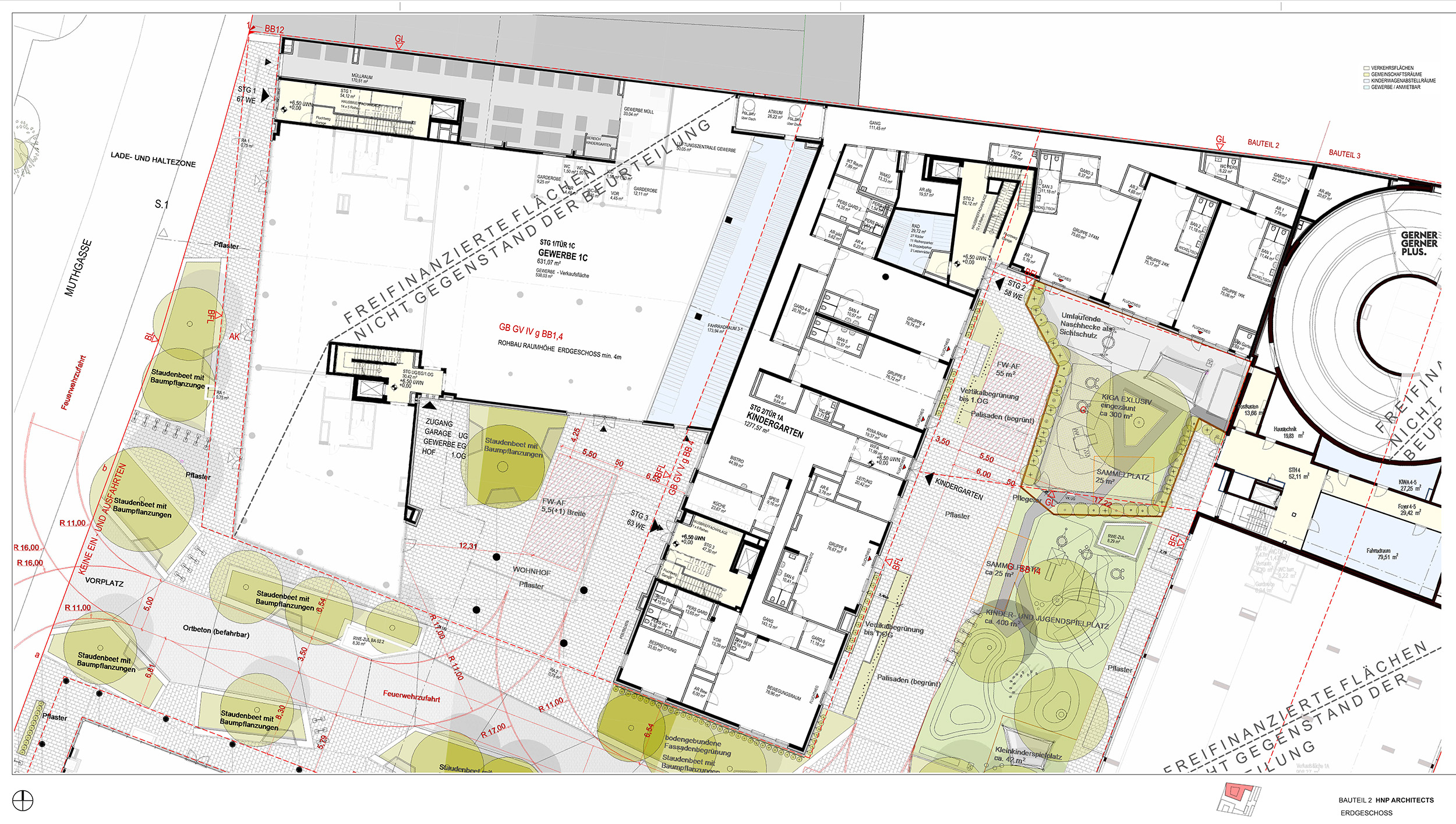 - ein Kindergarten befindet sich beim Bauteil 2 im Erdgeschoß