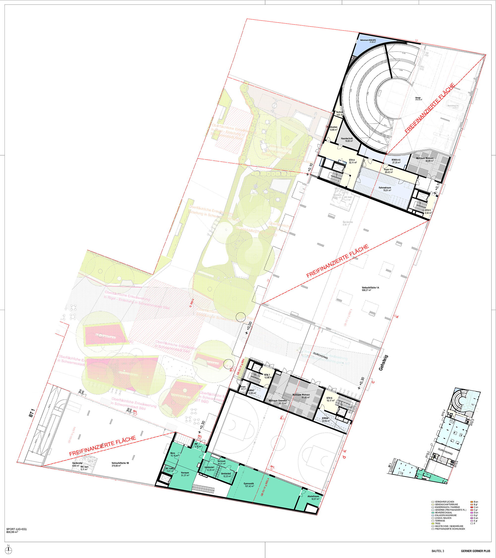 - eine Mehrzweckhalle mit Gymnastikraum befindet sich im Bauteil 3 und kann idealerweise für sportliche Aktivitäten sowie für Feste und Veranstaltungen genützt werden