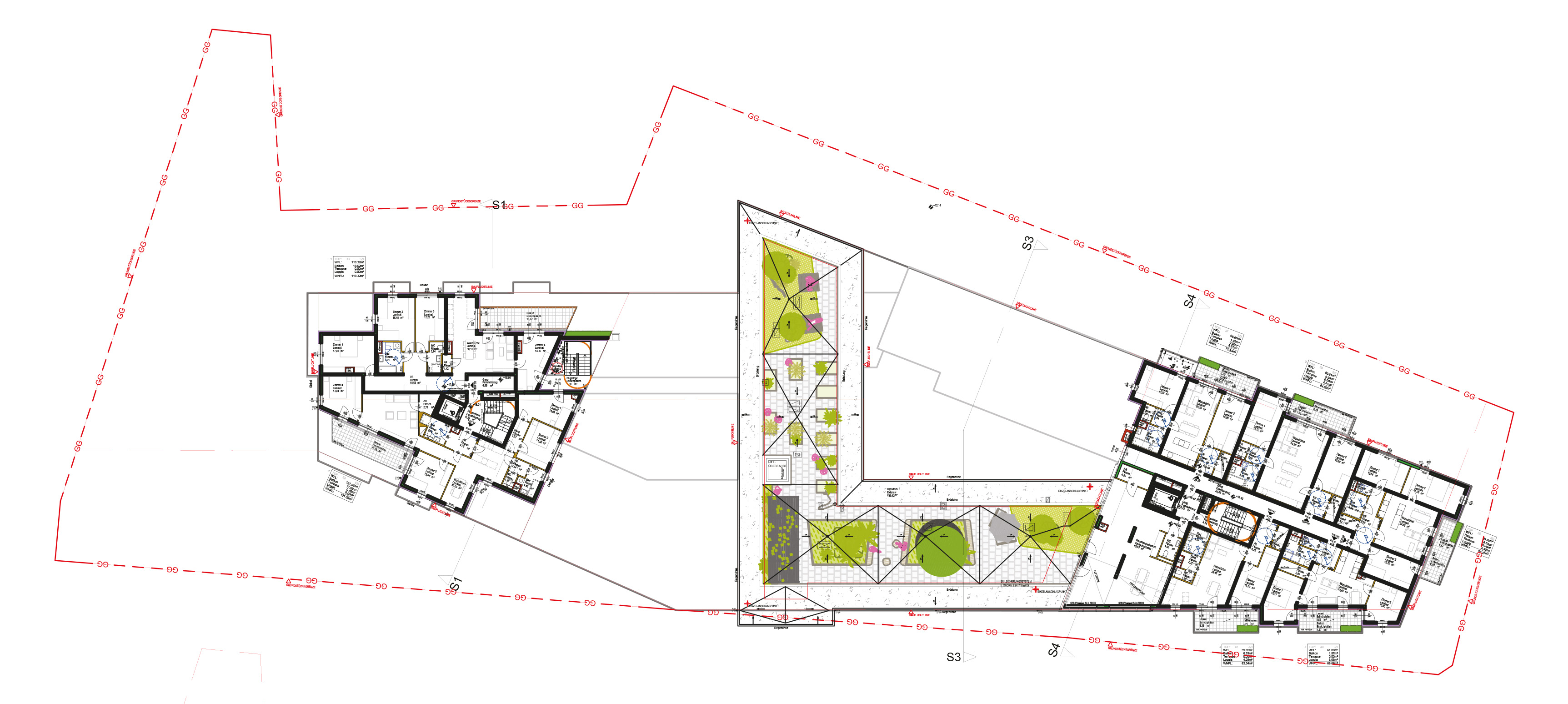 - das Neubauprojekt vom Bauträger „Gesiba“ umfasst 134 Wohnungen, wovon 69 Wohnungen nach dem SMART-Wohnbauprogramm umgesetzt werden. Das Gebäude besteht aus einem zusammenhängenden Baukörper mit unterschiedlichen Höhen, wobei sich auf mehreren Zwischenebenen Gemeinschaftsterrassen mit Urban-Gardening befinden.