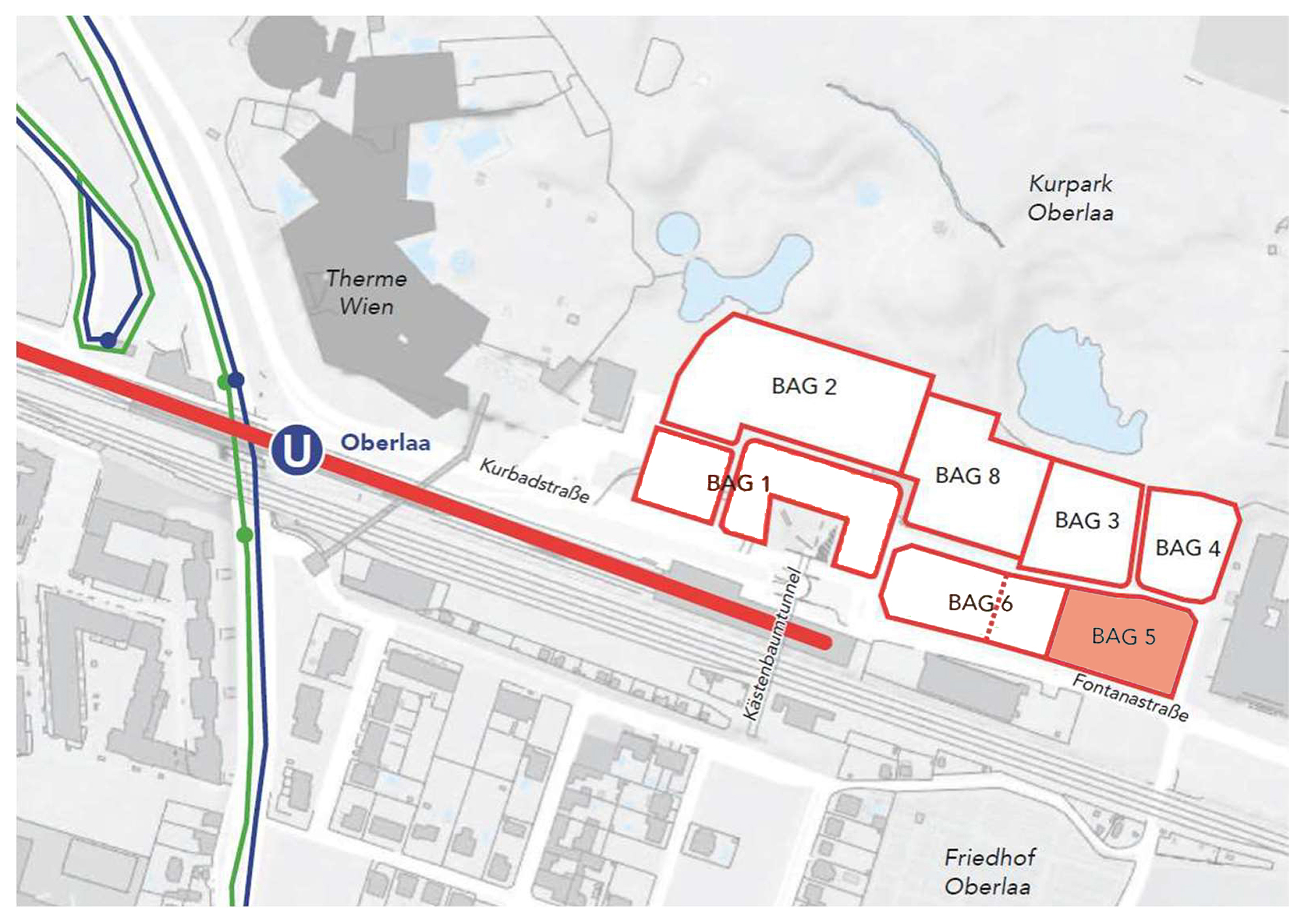 Im Rahmen eines kooperativen Planungsverfahrens entsteht in der Kurbadstraße in unmittelbarer Nähe zur Station U1/Oberlaa ein Entwicklungsgebiet mit insgesamt acht Bauplätzen. Unter der Leitidee „die Zukunft des Alterns liegt in Gemeinschaften“ entsteht auf Bauplatz 5 von der GARTENHEIM in Zusammenarbeit mit der Genossenschaft WOAL – Wohnen ohne Alterslimit ein besonderes Projekt, bestehend aus einem Familienwohnhaus und einem WOAL-Haus. Das differenzierte Angebot soll Menschen aller Lebensabschnitte ansprechen. Die Vergabe von Wohnungen im Tandem (z.B. Opa im WOAL-Haus, Kinder im Familienwohnhaus) und große Wohnungen für mehrköpfige Familien bringt einen Mehrwert für´s Quartier.