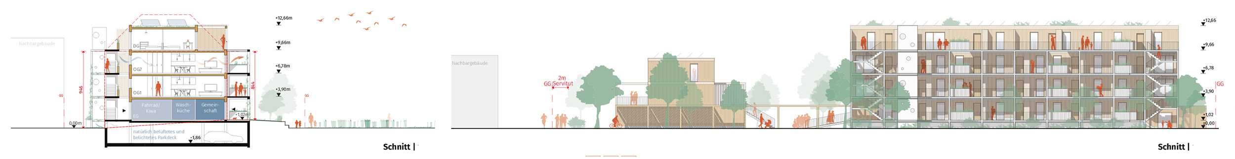 - Das entwickelte Holzbaukastensystem erfordert im Lebenszyklus einen geringeren Materialaufwand, kombiniert materialgerechte Bauweisen mit einem innovativen Energiesystem