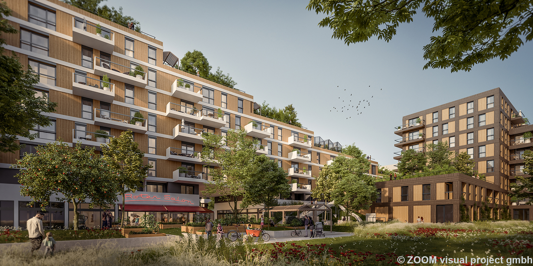 - gemeinschaftliche Gartenlandschaften und Freiraumelemente im EG und auf allen Dachebenen