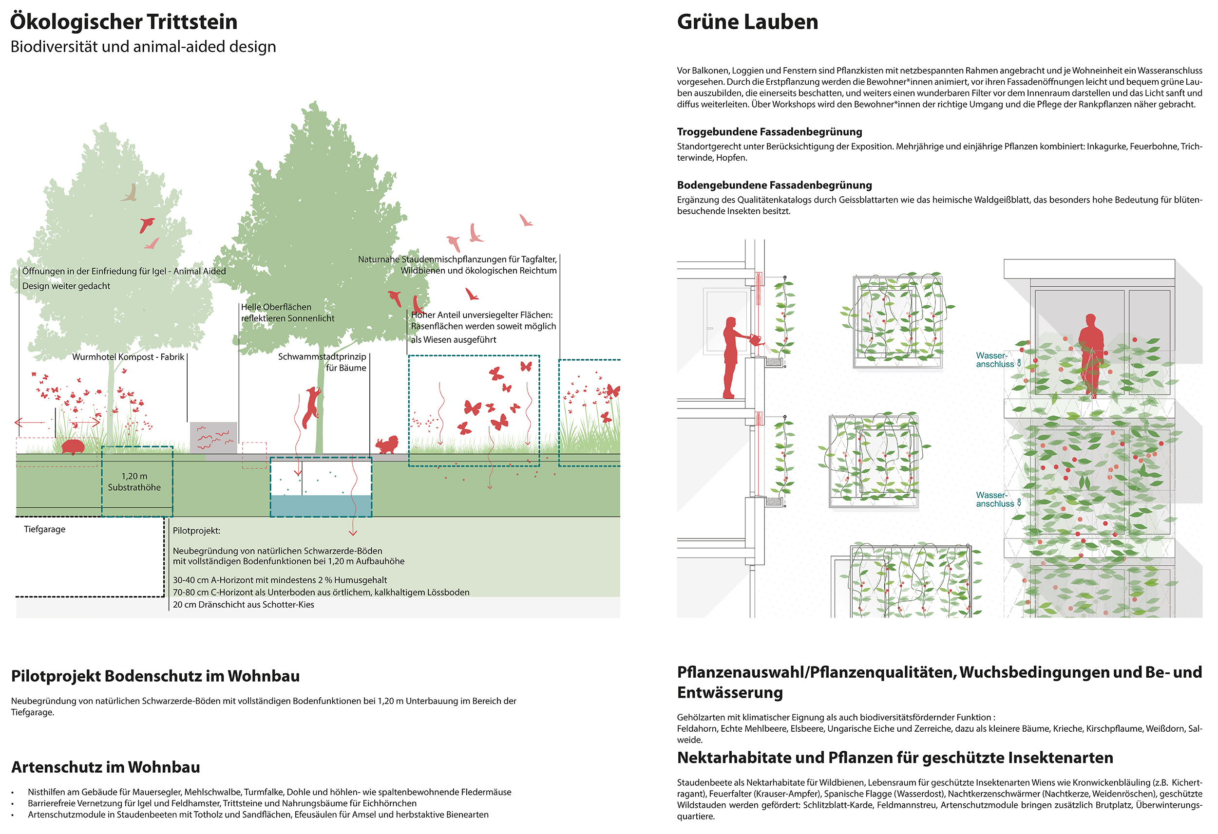 - tw. troggebundene Fassadenbegrünung vor Balkonen, Loggien und Fenstern, die von den Bewohner*innen selbst gepflegt werden können