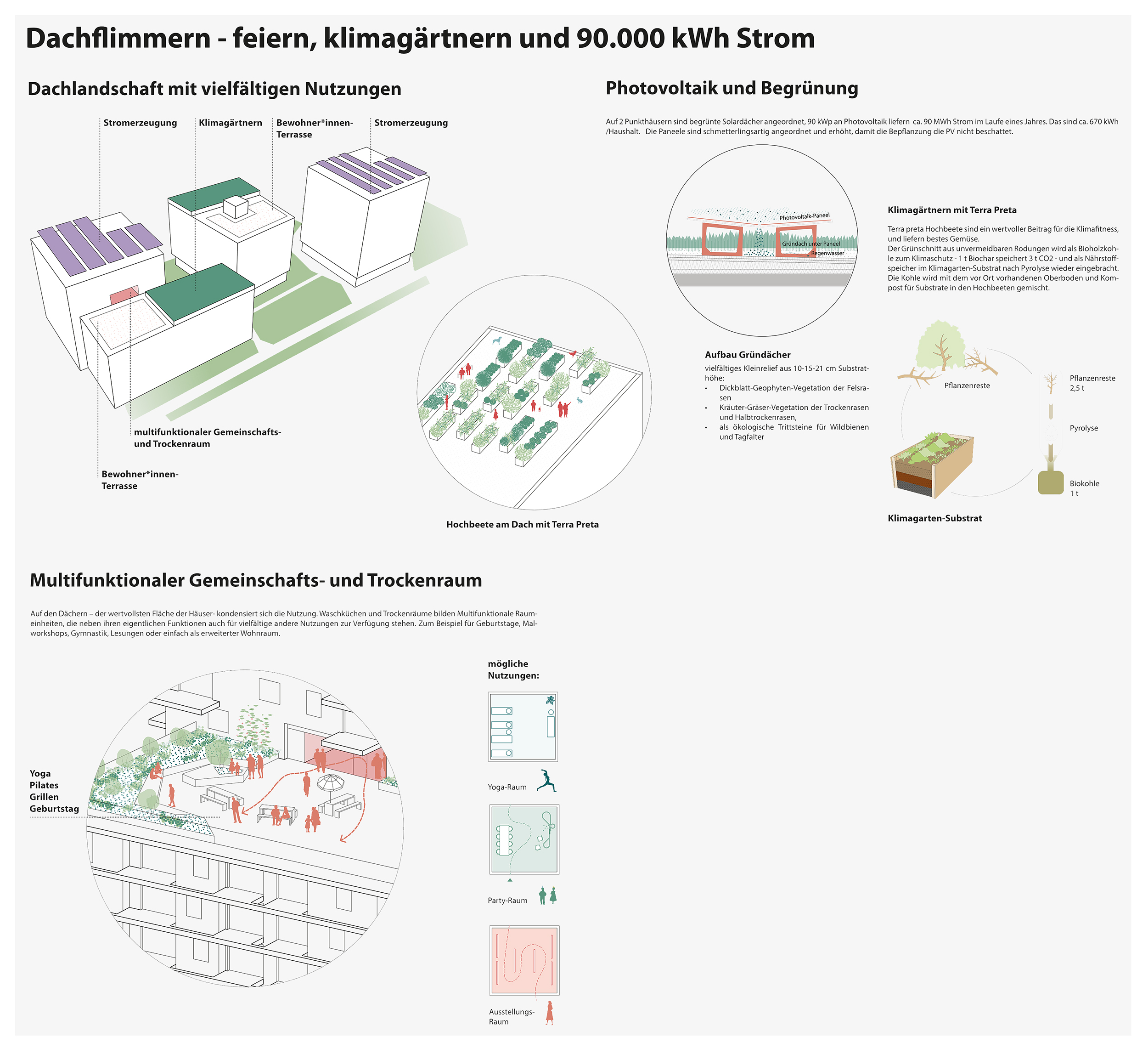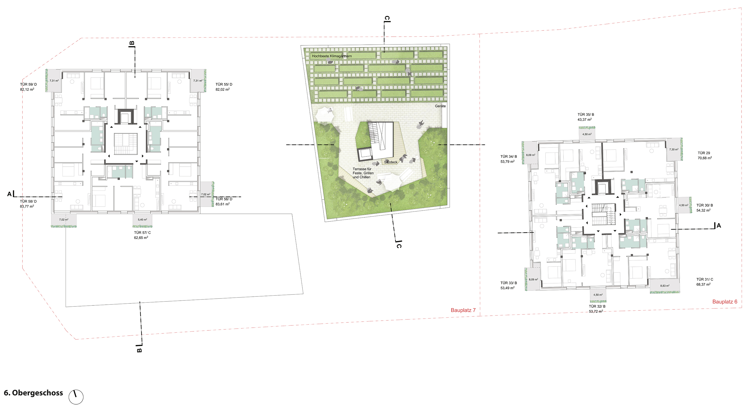 - Hochbeete mit vorgelagerter Gemeinschafts-Dachterrasse für Feste, Grillen und Chillen im 6. OG