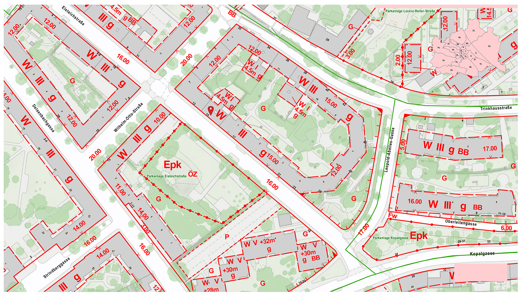 - Das Projektgebiet befindet sich in der Eisteichstrasse in unmittelbarer Nähe zur Simmeringer Hauptstraße, Nähe Hyblerpark/U3-Station „Zippererstraße“.