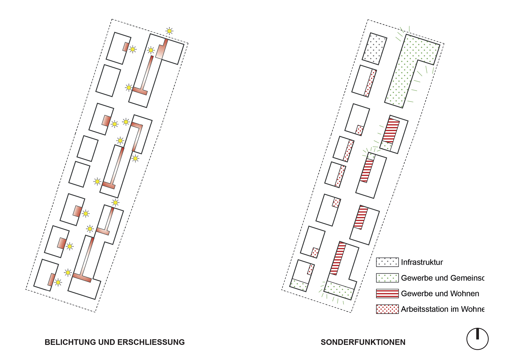 - verschiedene Generationen und Lebenskonzepte können aufgrund unterschiedlicher Wohntypologien zusammenkommen