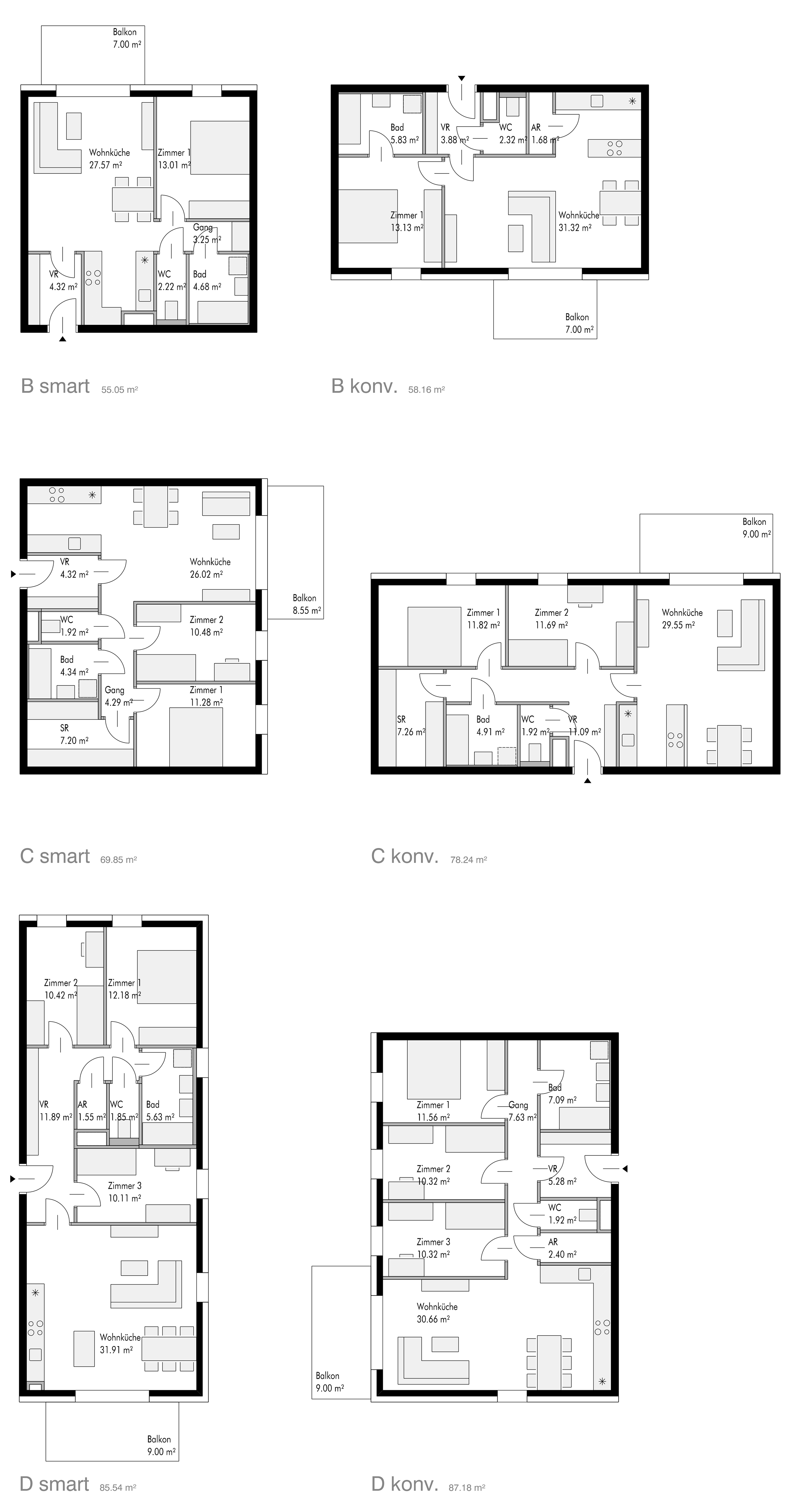 - 2-, 3- und 4-Zimmer-Wohnungen