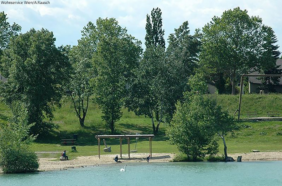 - Das Wohnprojekt befindet sich nur wenige Meter von der alten Donau entfernt.