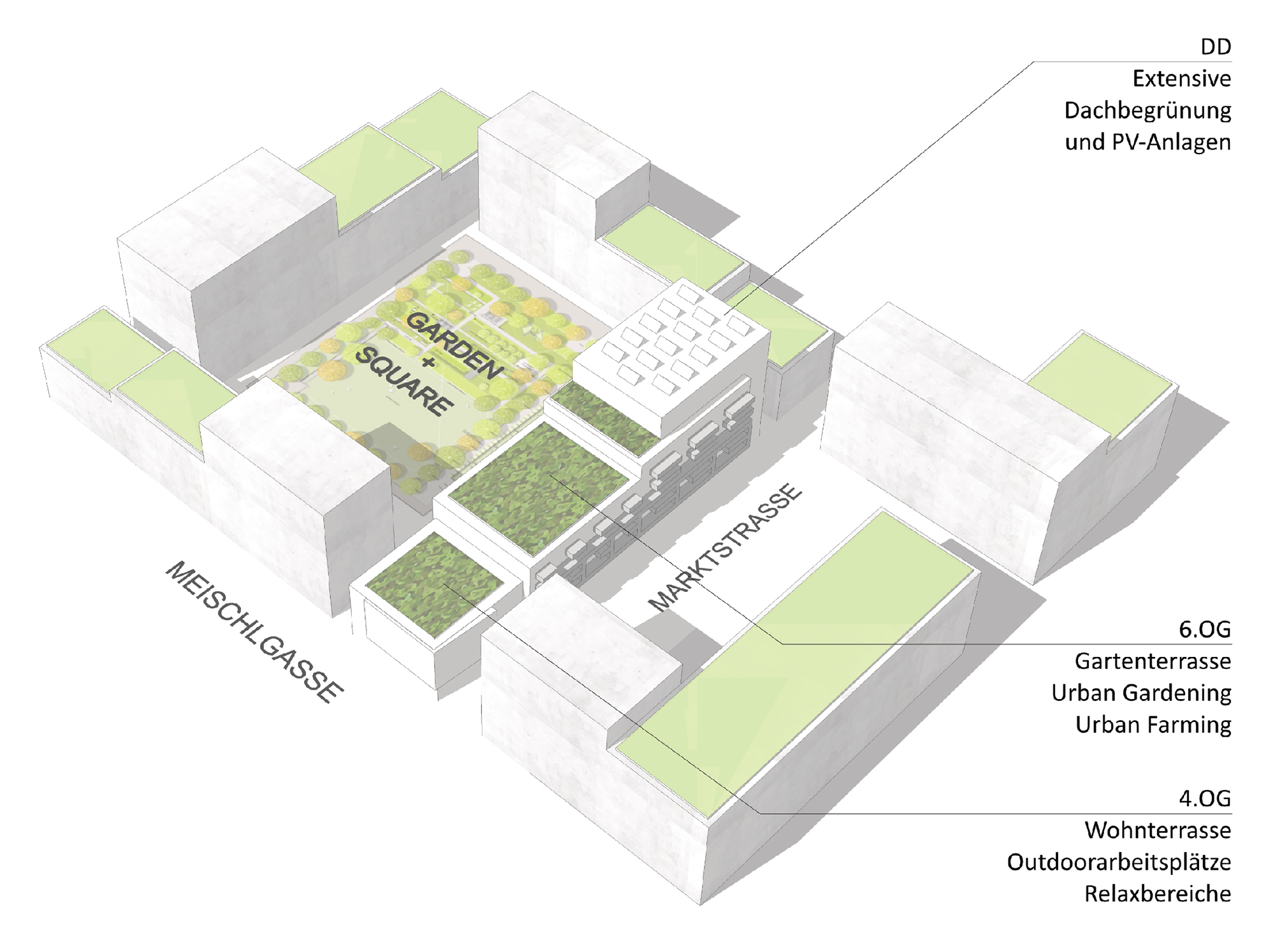- begehbare Dachterrassen für zusätzliches gemeinschaftliches Urban Gardening