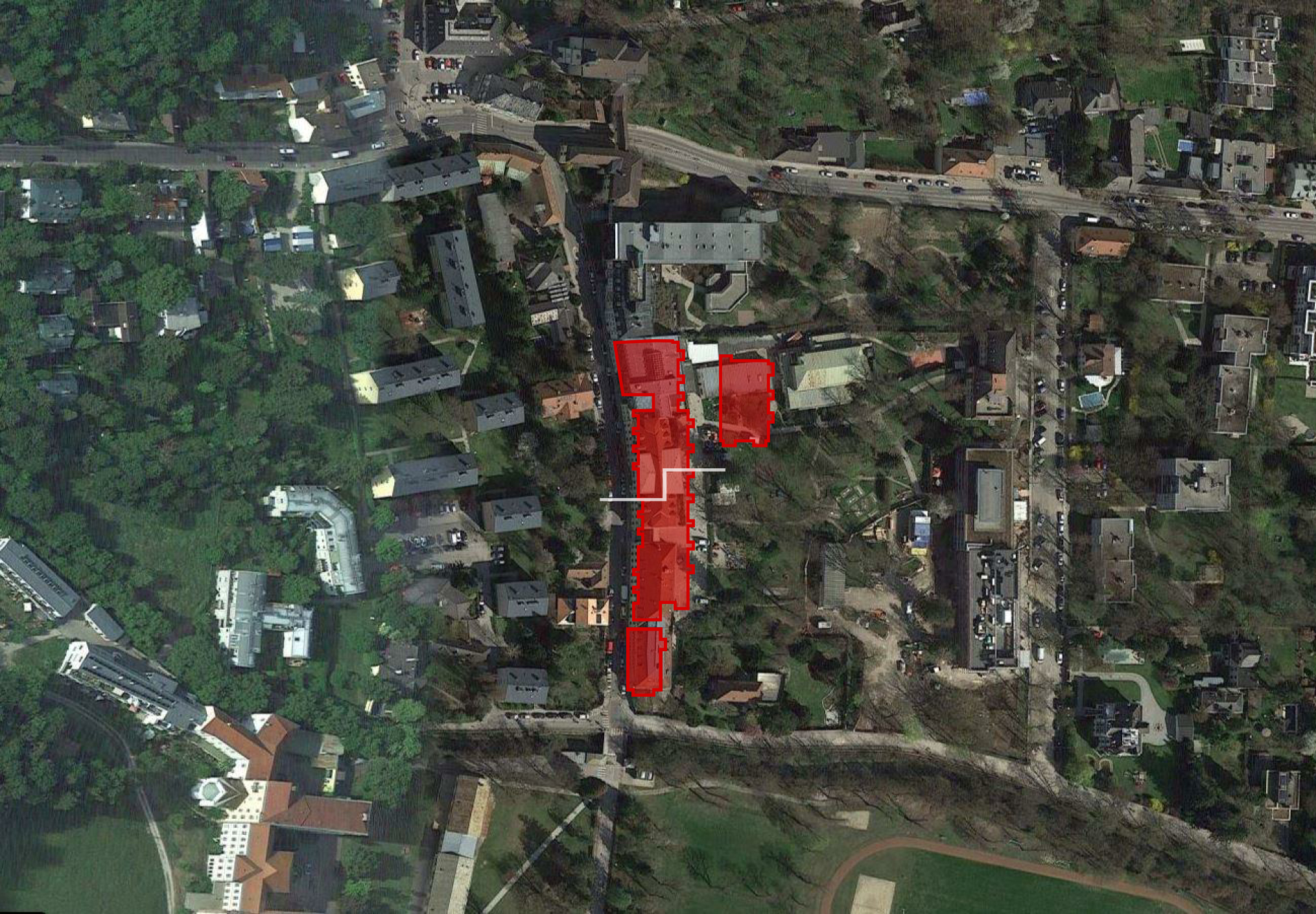 - Dieses Projekt ist im Norden an das Pflegeheim Caritas Socialis Kalksburg angeschlossen, im Osten befindet sich das Therapiezentrum Anton-Proksch-Institut und im
