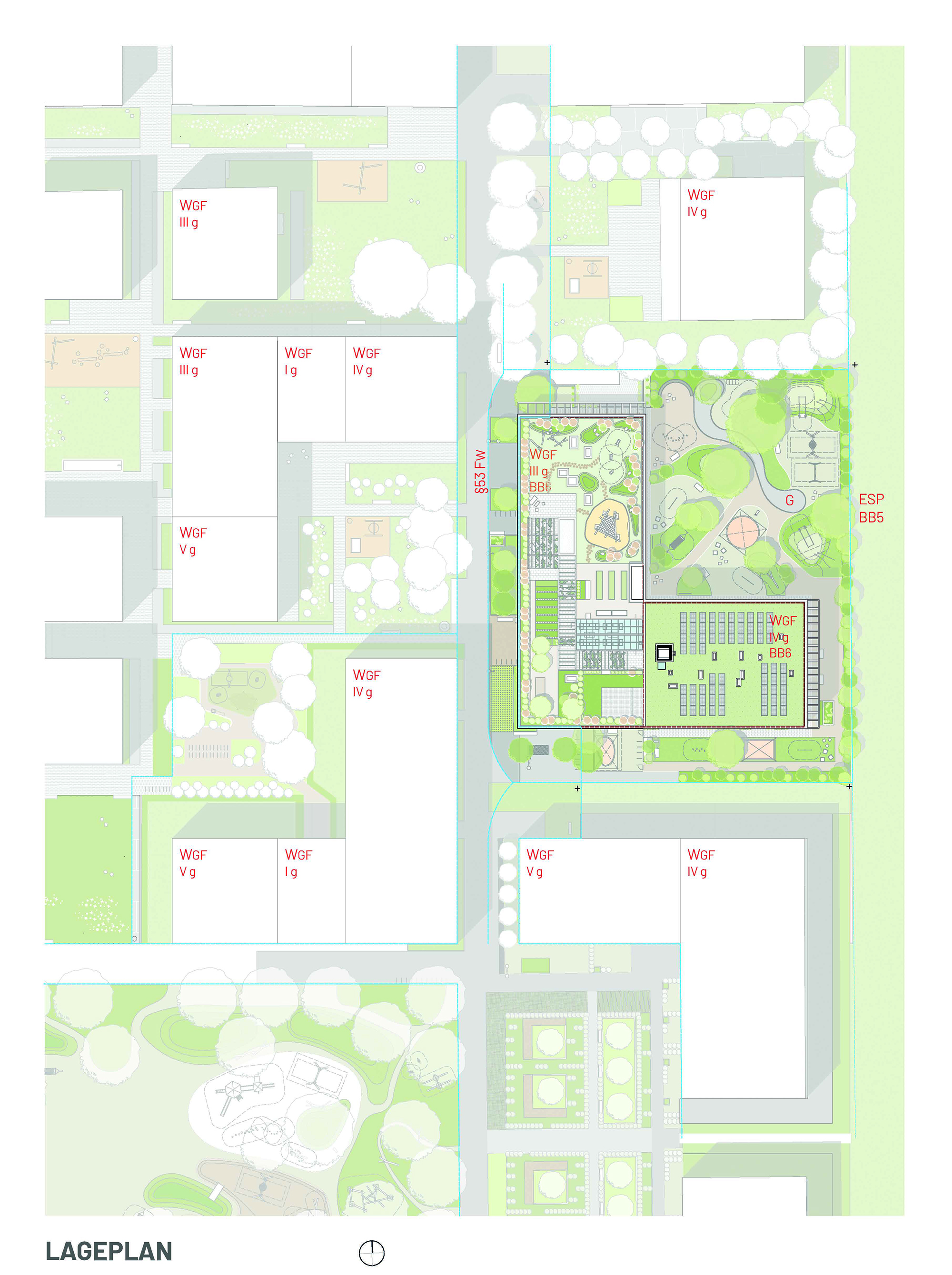 - bauplatzübergreifender Kinder- und Jugendspielplatz mit Spielwiese und Spielplatz im nahen gemeinschaftlichen Park