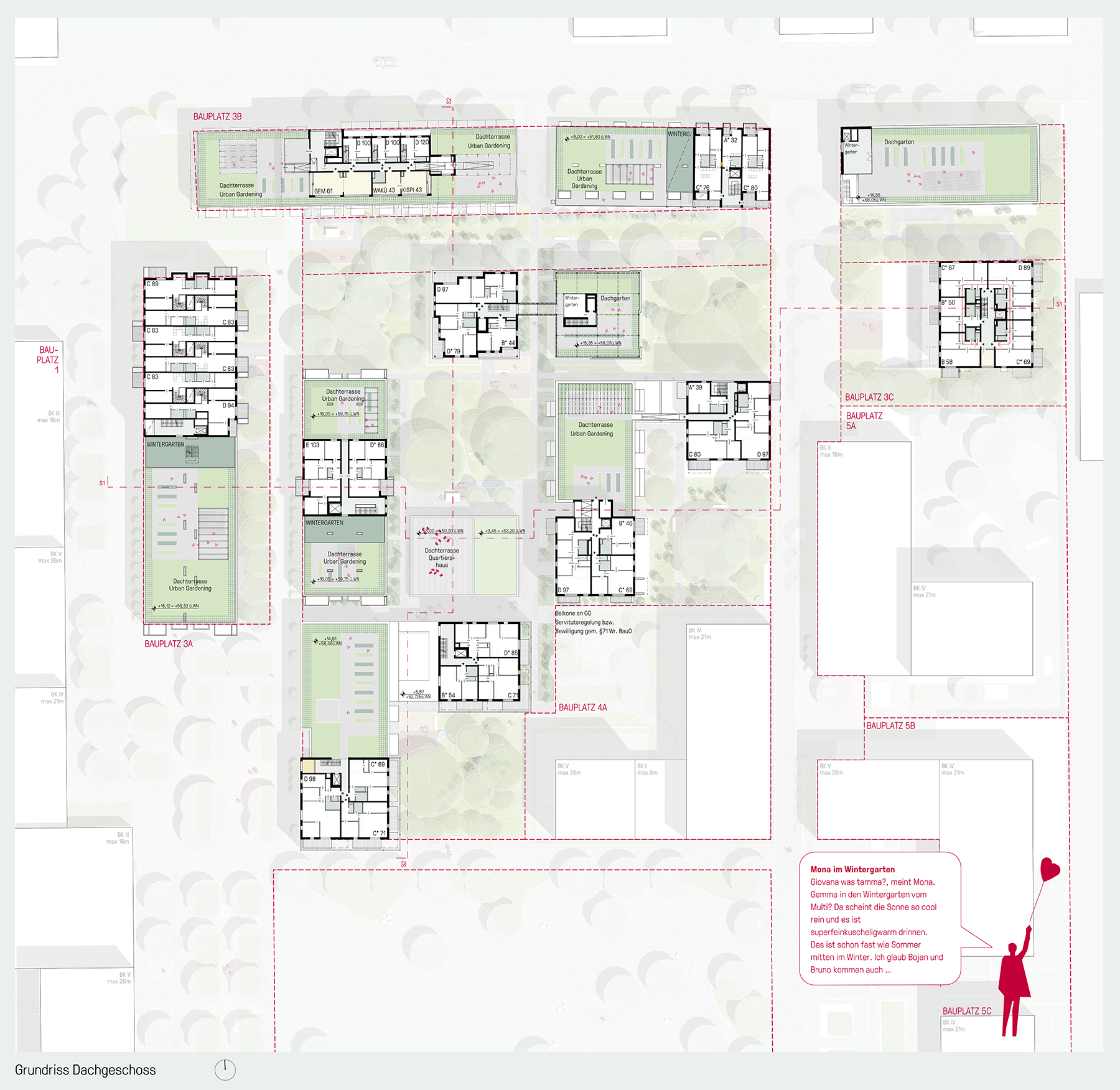 - Wintergärten auf einzelnen Bauteilen mit Bezug zu den Dachterrassen für gemeinsames Gärtnern