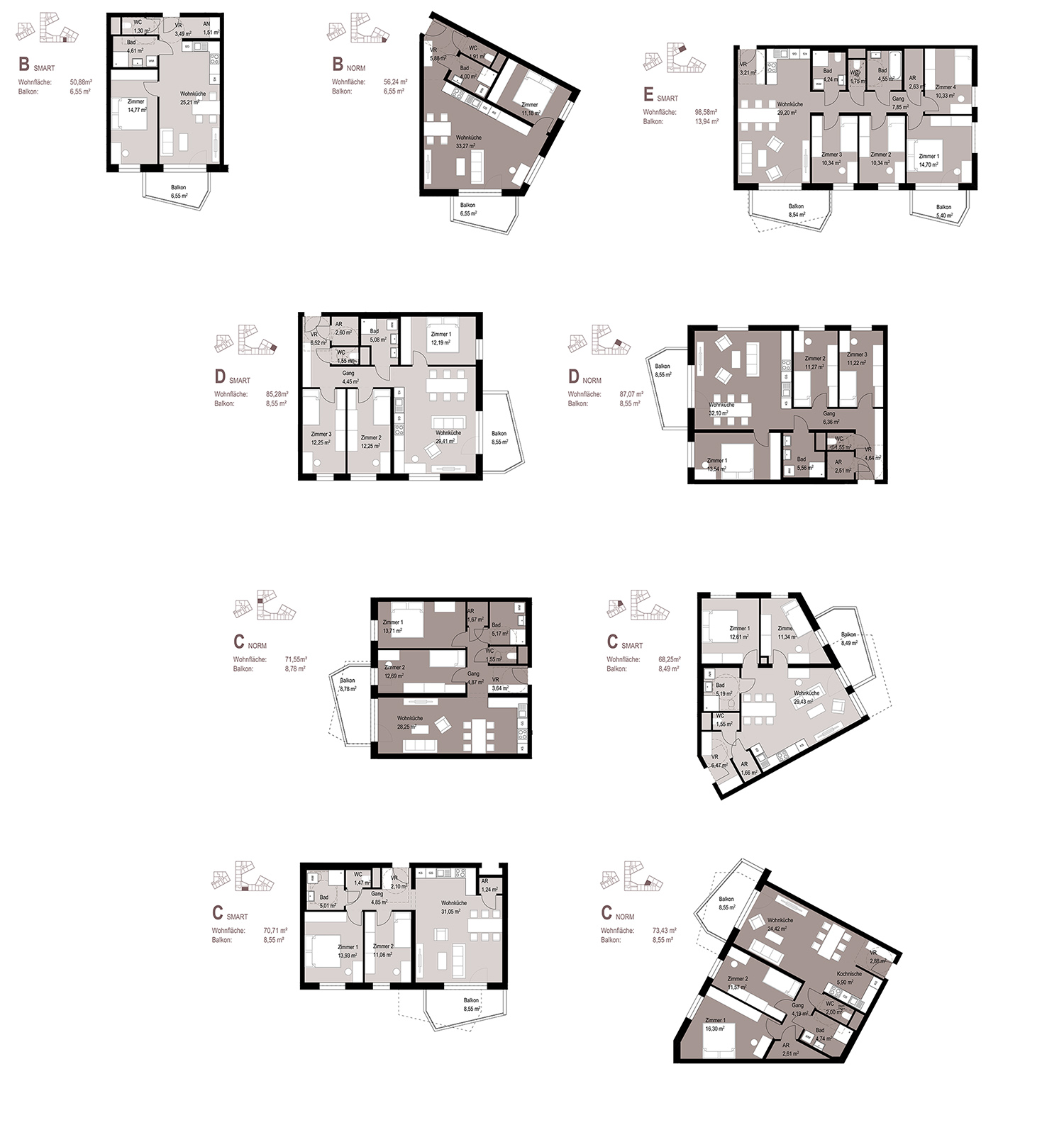 - 1-, 2-, 3-, 4- und 5-Zimmer-Wohnungen