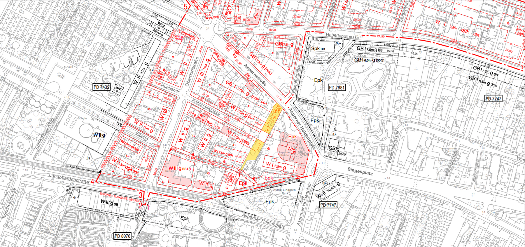 - Das Wohnprojekt befindet sich in unmittelbarer Nachbarschaft zum Asperner Heldenplatz und in zehnminütiger Gehentfernung zur U2 Station „Aspernstraße“.