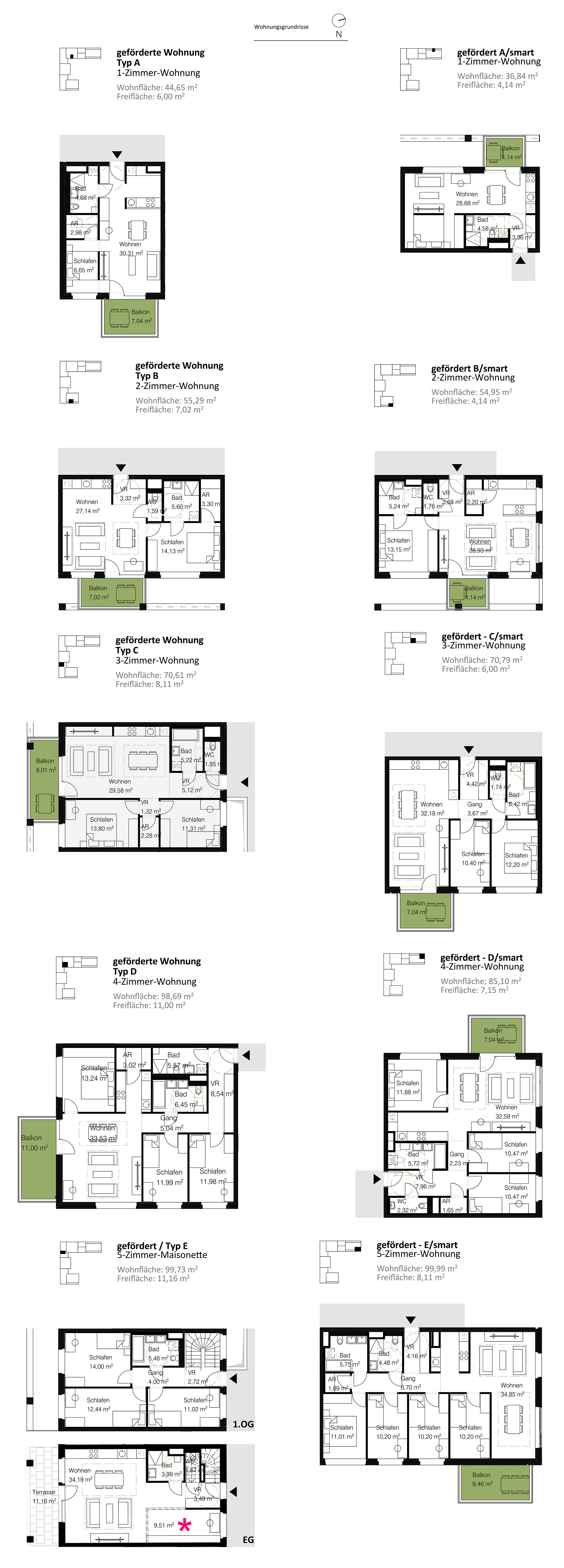 - es werden 92 geförderten Wohnungen mit Superförderung errichtet, wovon 46 Wohnungen nach dem SMART-Wohnbauprogramm realisiert werden