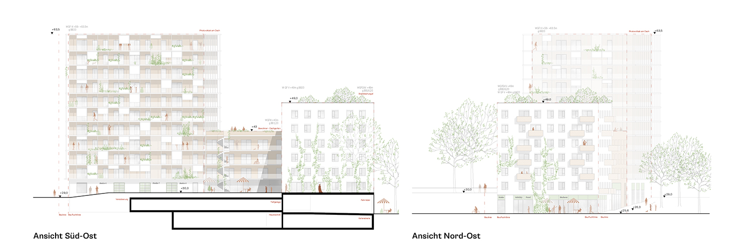 - Das Projekt hat einen Fokus auf das Thema „gute Nachbarschaft“. Die Bewohner*innen werden bereits vor Bezug und darüber hinaus bei der Bildung einer aktiven Hausgemeinschaft unterstützt
